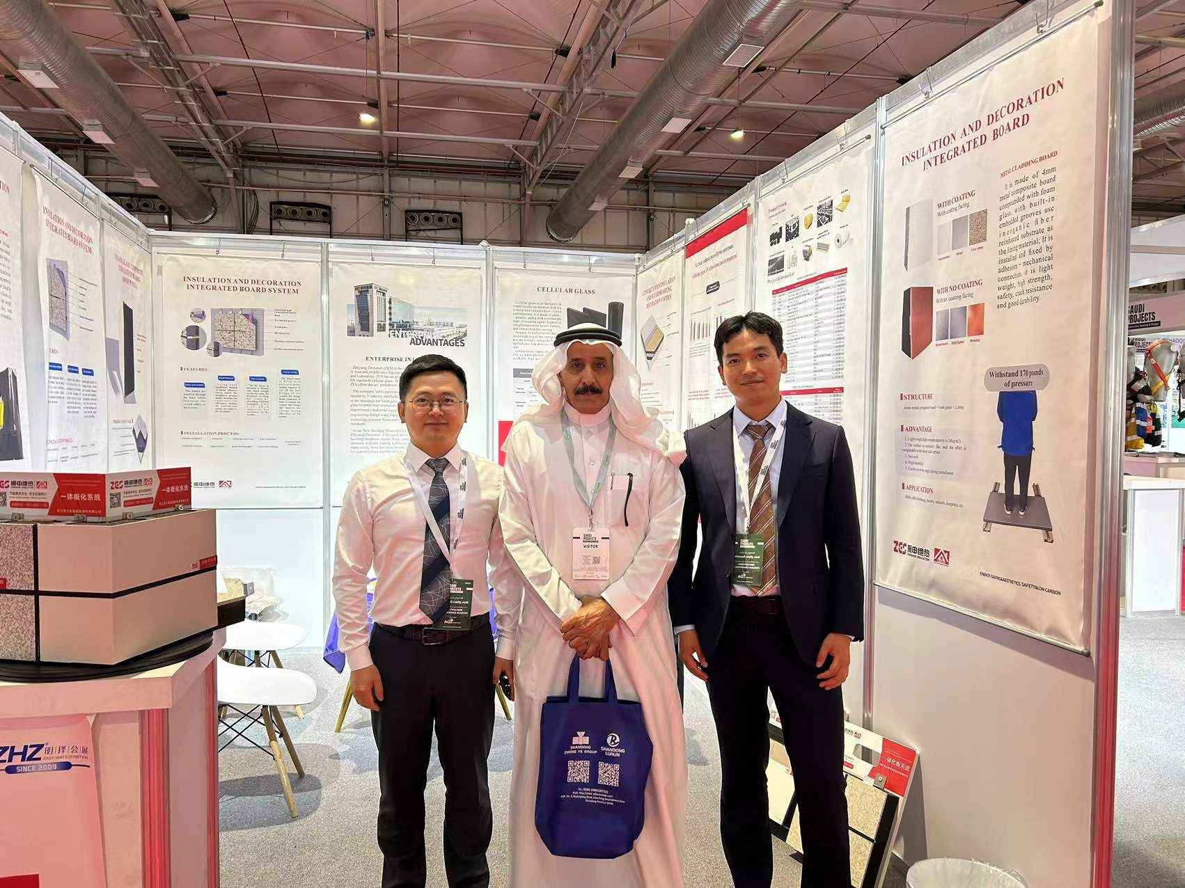 在 展 會 現 場 , 振 申 專 業 團 隊 為 參 觀 者 提 供 了 詳 細 的 產 品 介 紹 和 咨 詢 服 務 。 他 們 耐 心 解 答 參 觀 者 的 問 題 , 分 享 關 于 高 性 能 保 溫 裝 飾 一 體 板 系 統 的 參 數 和 知 識 , 讓 參 觀 者 更 加深入地了解我們的產品和服務。 對于振申絕熱而言,參與沙特建材展不單是展現公司實力的 平臺,更是與國際業界進行交流與學習的珍貴機會。沙特阿拉伯 作為中東地區的重要經濟體,擁有巨大的市場潛力。振申絕熱此行的目的,在于進一步開拓中東市場,提高品牌知名度和影響 力。我們堅信,在不久的將來,我們的優質產品和服務將進入更 多中東家庭,為當地消費者提供更加安全、舒適、美觀的產品體驗。