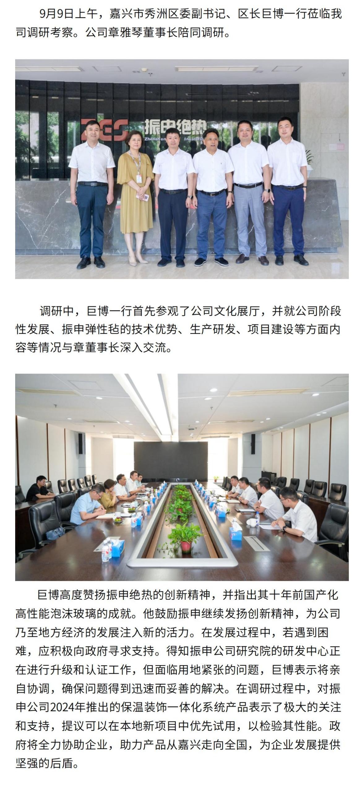 嘉興市秀洲區(qū)委副書(shū)記、區(qū)長(zhǎng)巨博一行蒞臨振申絕熱調(diào)研考察