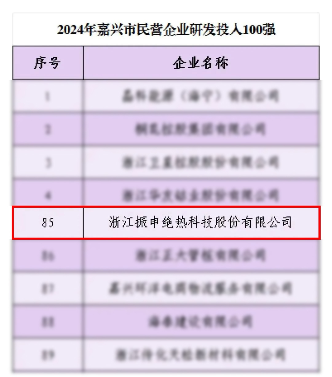 在 2024 年嘉興市民營(yíng)企業(yè)的評(píng)選中,振申絕熱脫穎而出,榮登【利潤(rùn) 100 強(qiáng)】、【研發(fā)投入 100 強(qiáng)】、【納稅 100 強(qiáng)】三張榜單!這一輝煌成就,不僅是對(duì)振申絕熱過(guò)往努力的高度認(rèn)可,更是其未來(lái)發(fā)展的強(qiáng)大動(dòng)力。