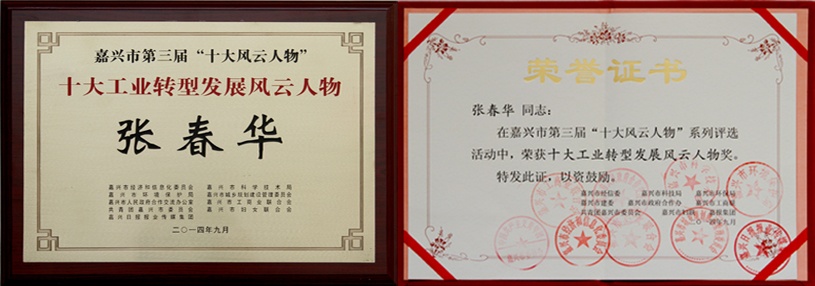 通過近期舉辦的嘉興市舉辦的第三屆“十大風云人物”系列評選活動,公司董事長張春華被評選為十大工業轉型發展風云人物之一。